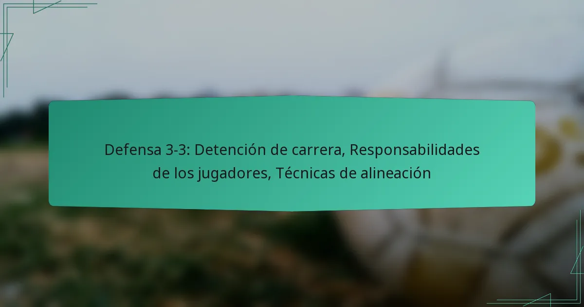 El posicionamiento de los jugadores es crucial en la Defensa 3-3 para asegurar una detención óptima de la carrera. Los linieros defensivos deben alinearse de manera que les permita controlar sus huecos asignados mientras pueden desprenderse de los bloqueos de manera efectiva. La colocación adecuada de las manos y el trabajo de pies son habilidades esenciales para mantener la ventaja sobre los linieros ofensivos.